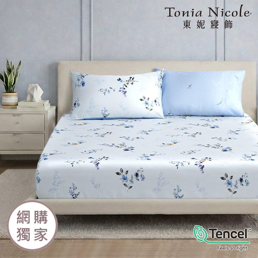 【Tonia Nicole 東妮寢飾】沐藍織光60支環保印染100%萊賽爾天絲床包枕套組(加大)