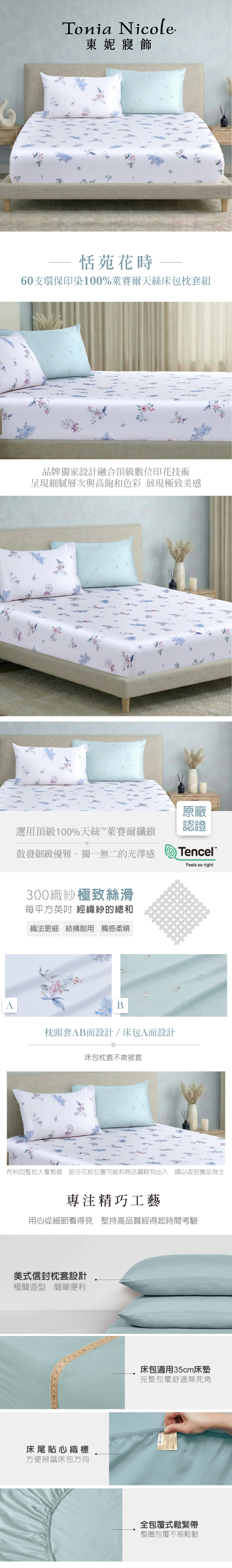 【Tonia Nicole 東妮寢飾】恬苑花時60支環保印染100%萊賽爾天絲床包枕套組(加大)