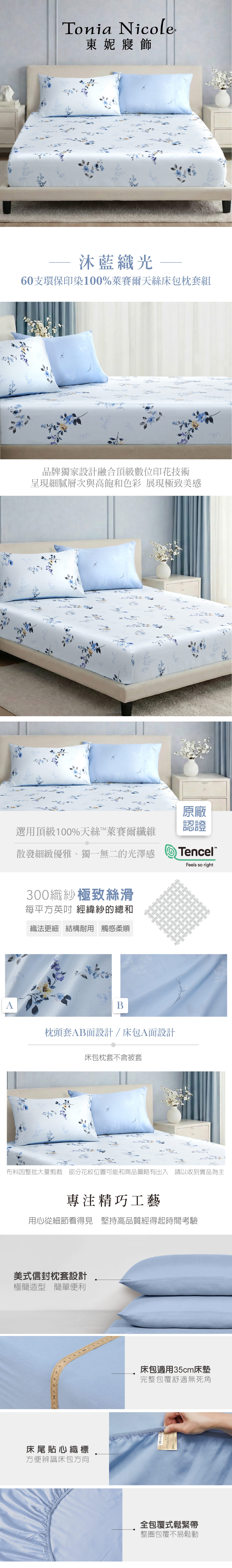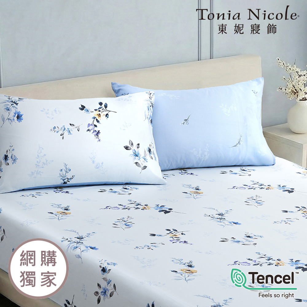 【Tonia Nicole 東妮寢飾】沐藍織光60支環保印染100%萊賽爾天絲床包枕套組(雙人)