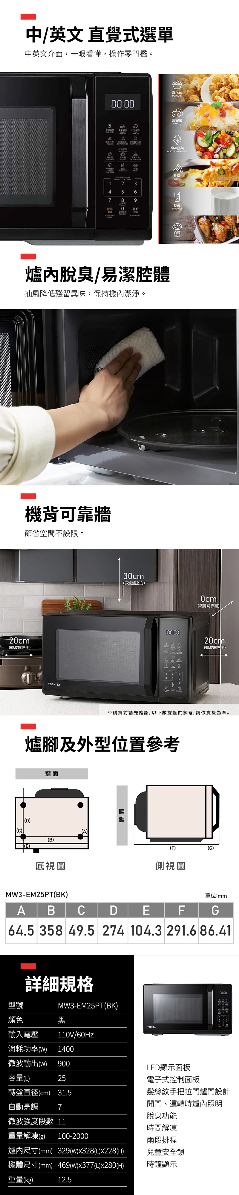 日本東芝TOSHIBA 25L微電腦微波爐 MW3-EM25PT(BK)