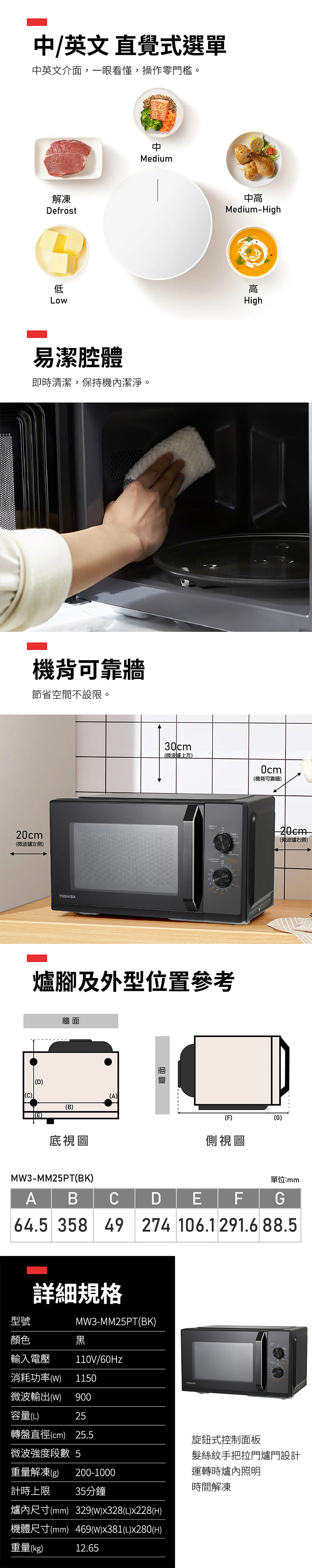 日本東芝TOSHIBA 25L機械式微波爐 MW3-MM25PT(BK)