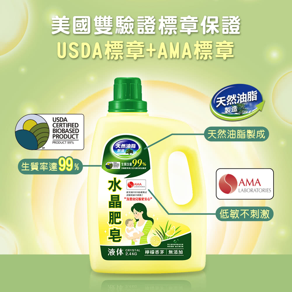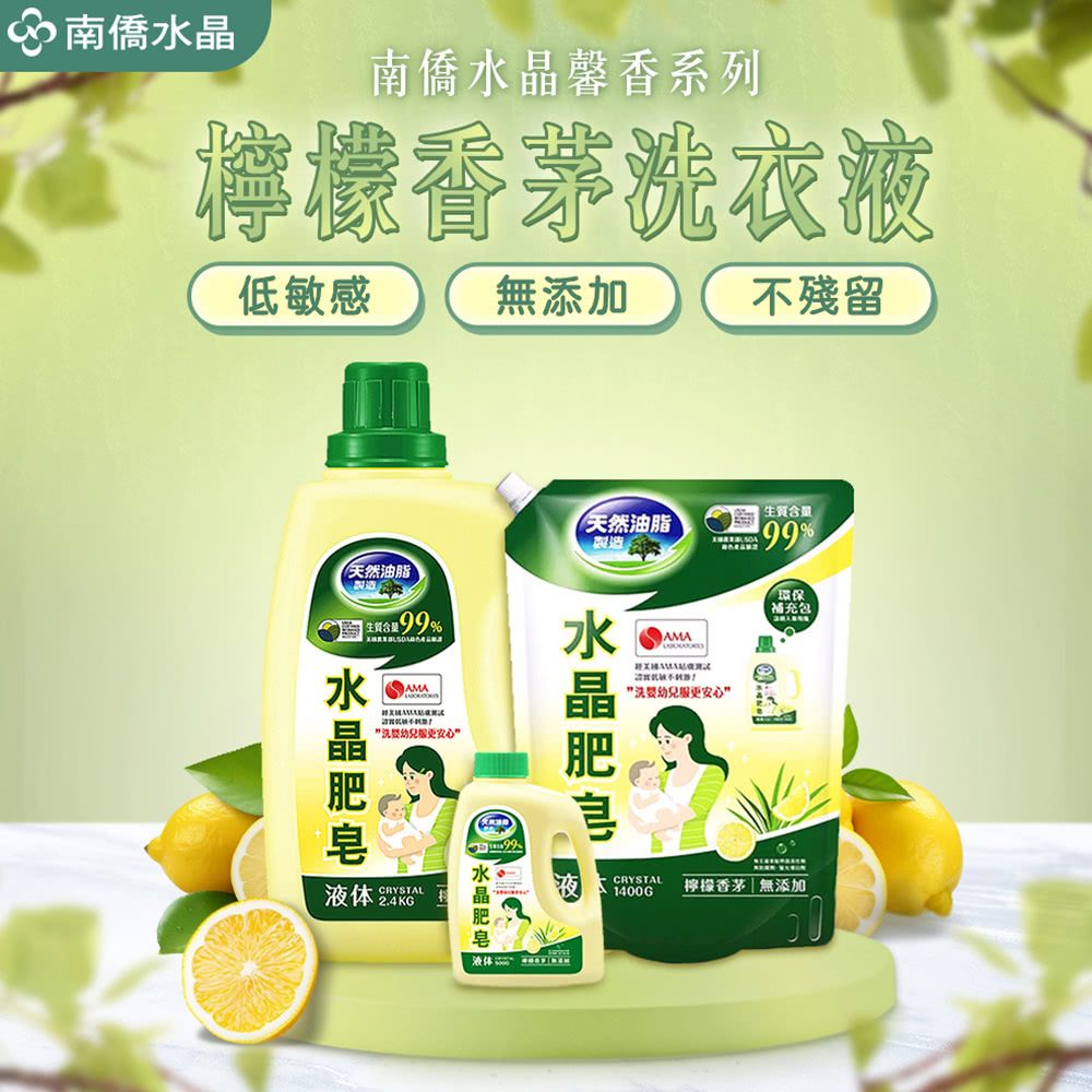 【南僑水晶】檸檬香茅水晶肥皂液體洗衣精1瓶+2補組