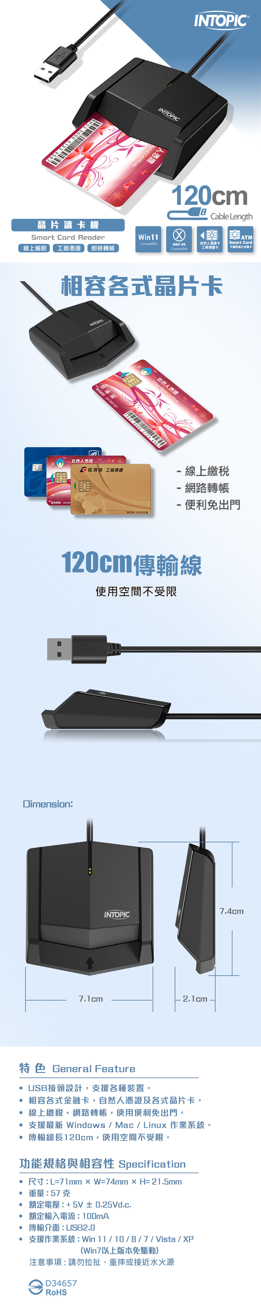 INTOPIC 晶片讀卡器 CR-50(支援最新 Windows Mac Linux)