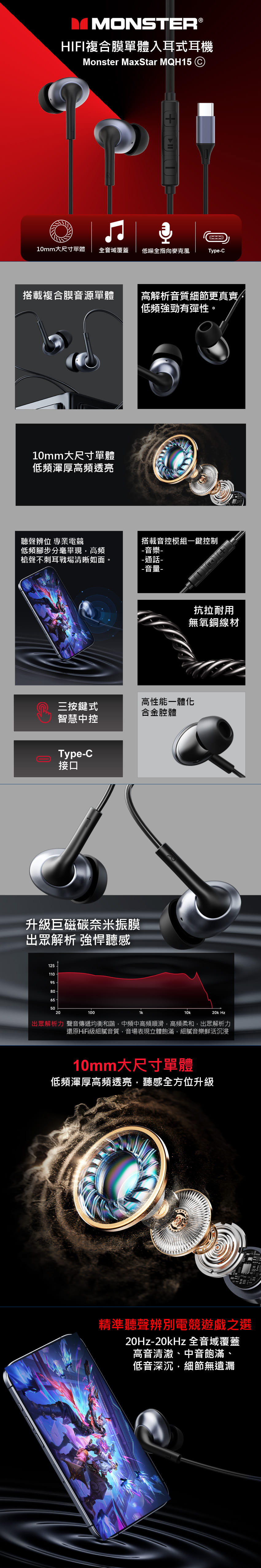 MONSTER 魔聲 HIFI複合膜單體入耳式耳機(MON-MQH15C) Type-C