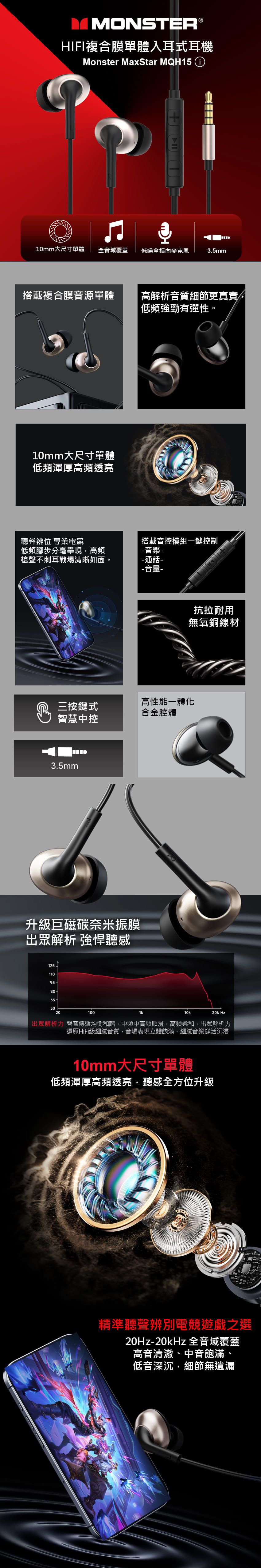 MONSTER 魔聲 HIFI複合膜單體入耳式耳機(MON-MQH15I) 3.5mm音源孔