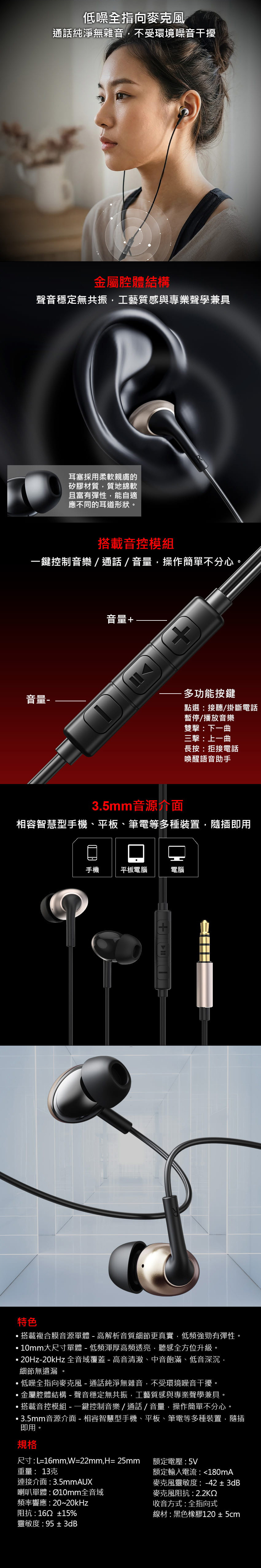 ★搭載音控模組 - 一鍵控制音樂 / 通話 / 音量,操作簡單不分心。