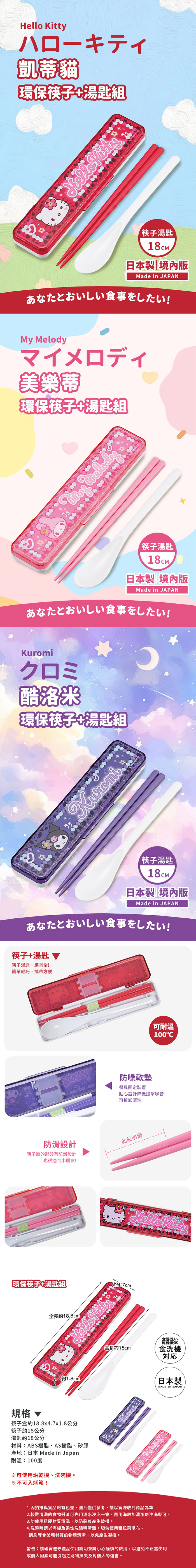 【百科良品】日本製 三麗鷗 凱蒂貓 美樂蒂 酷洛米 閃耀鑽石 環保筷子+湯匙組 18CM(日本境內版)-任選款