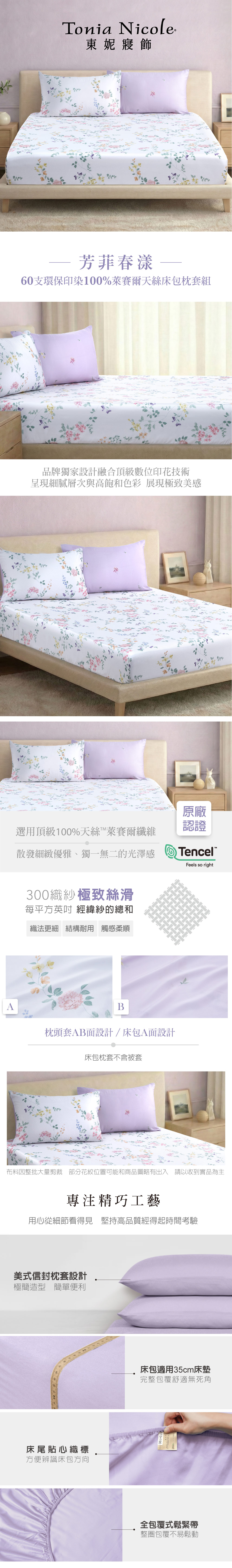 【Tonia Nicole 東妮寢飾】芳菲春漾60支環保印染100%萊賽爾天絲床包枕套組(加大)