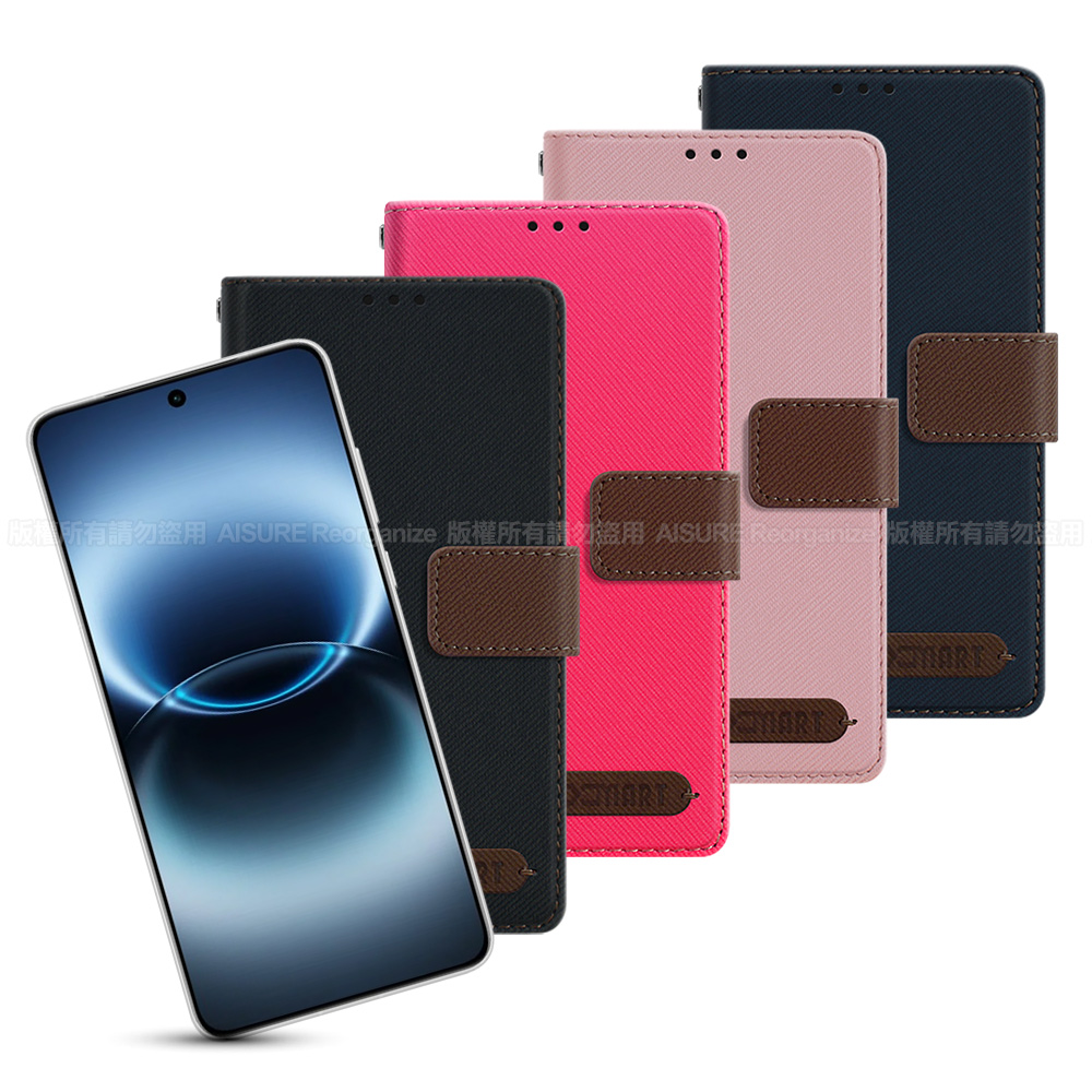 Xmart VIVO X300 Ultra 度假浪漫風斜紋側掀支架皮套-藍色
