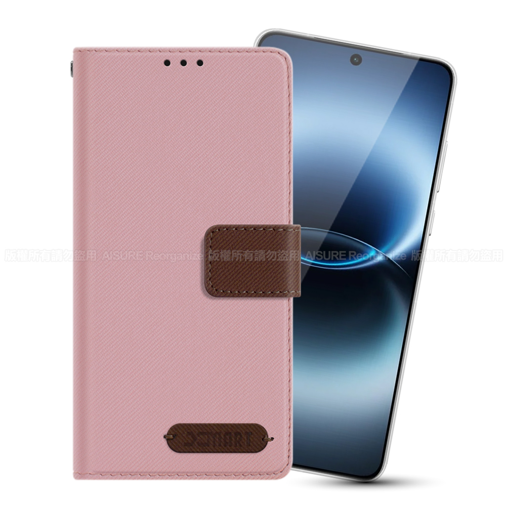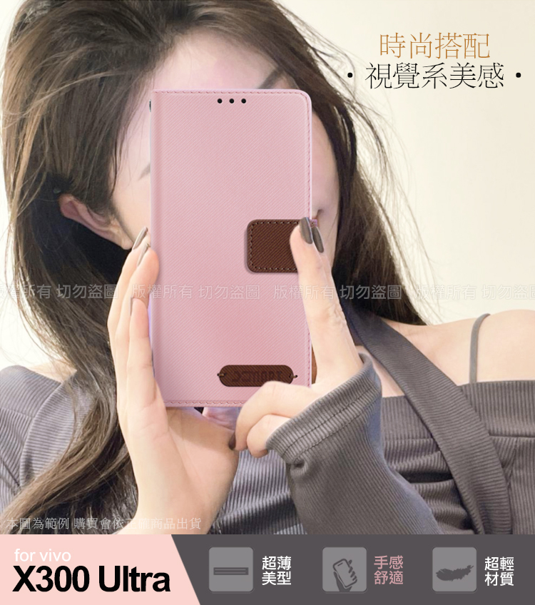 Xmart VIVO X300 Ultra 度假浪漫風斜紋側掀支架皮套-粉色