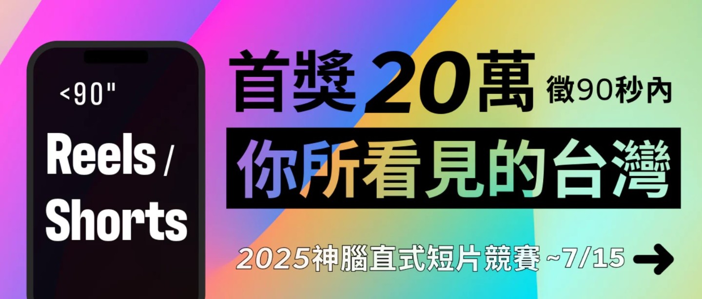 無論是拍片新手還是老手,只要敢拍、敢投稿,可能是拍好玩的、拍日常的、拍朋友笑出來的瞬間,就有機會把高額獎金帶回家!本屆「神腦直式短片競賽」是全台獎項最多、獎金最高的直式短片競賽,設備不拘、年齡不拘,投稿報名只要3步驟,即日起徵件至7月15日中午12點。