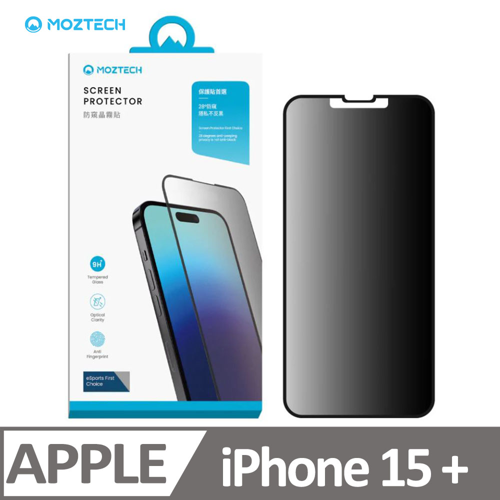 Moztech iPhone 15 Plus 獨家專利 防窺晶霧貼 電競膜 玻璃保護貼
