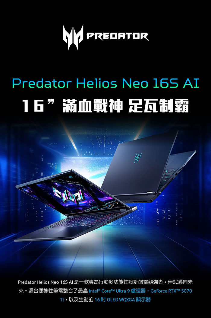 《Acer 宏碁》PHN16S-71-94UX (16吋WQXGA/Ultra 9 275HX/16G/512G PCIe SSD/RTX5060/Win11)