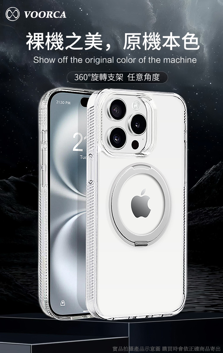 VOORCA iPhoone 17 Air 豔星磁吸360度立架全透明軍規保護殼-黑