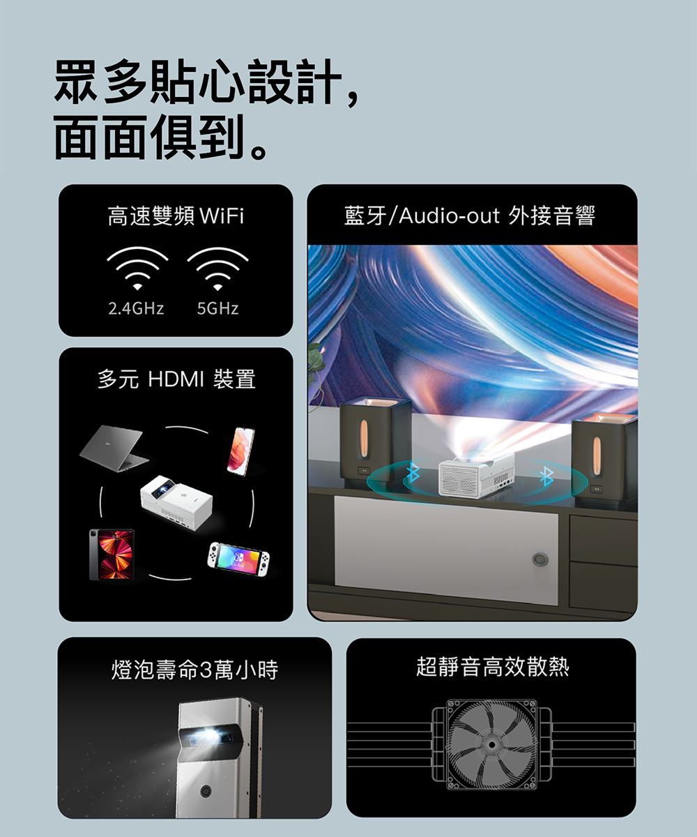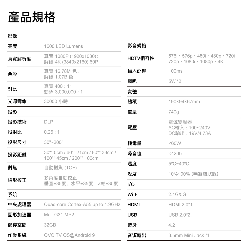 OVO 1080p超短焦 智慧投影機 KS1 時尚白*送四季線上+Friday影視30天