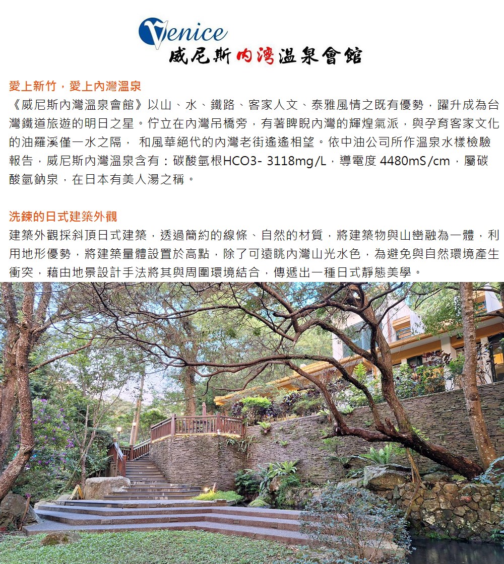 【新竹-威尼斯內灣溫泉會館】雙人湯屋泡湯券