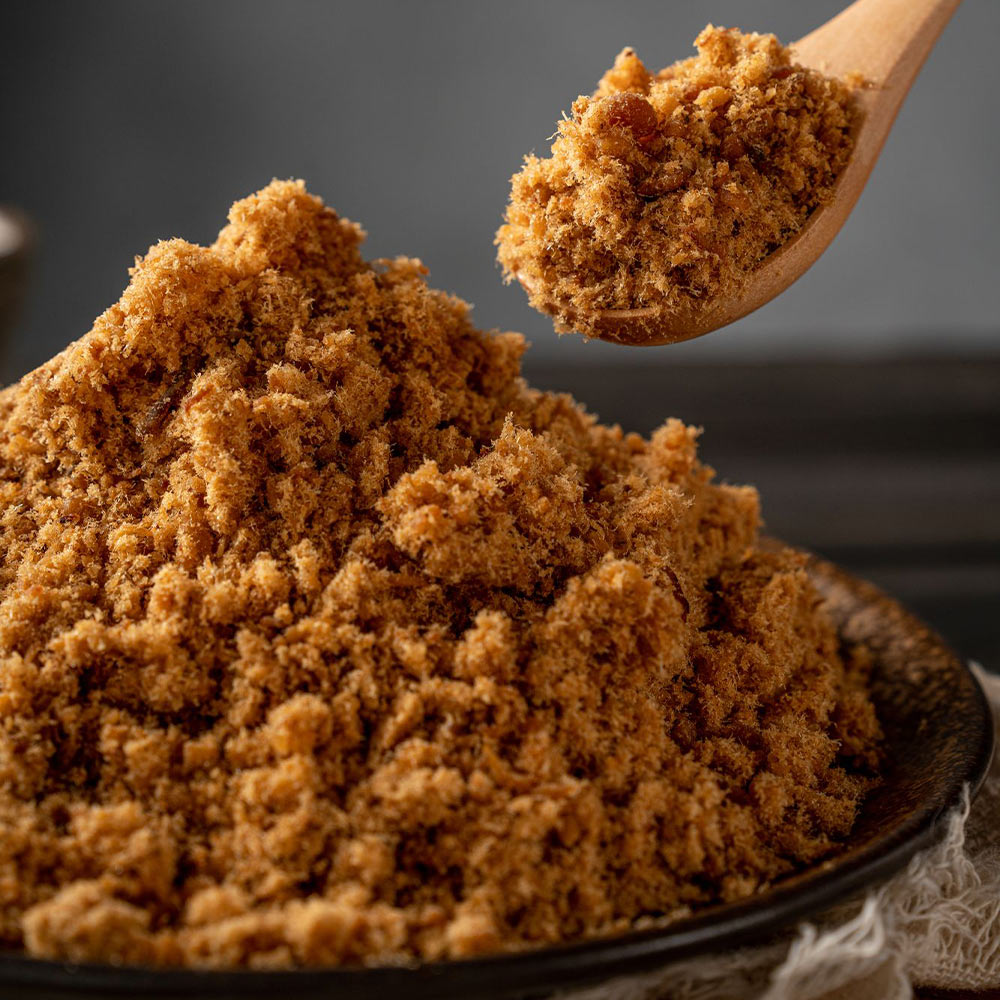 2.美味秘訣:以先進技術分離出魚肉,再佐以新東陽獨家配方調味,焙炒出香酥美味又兼顧營養的旗魚鬆。