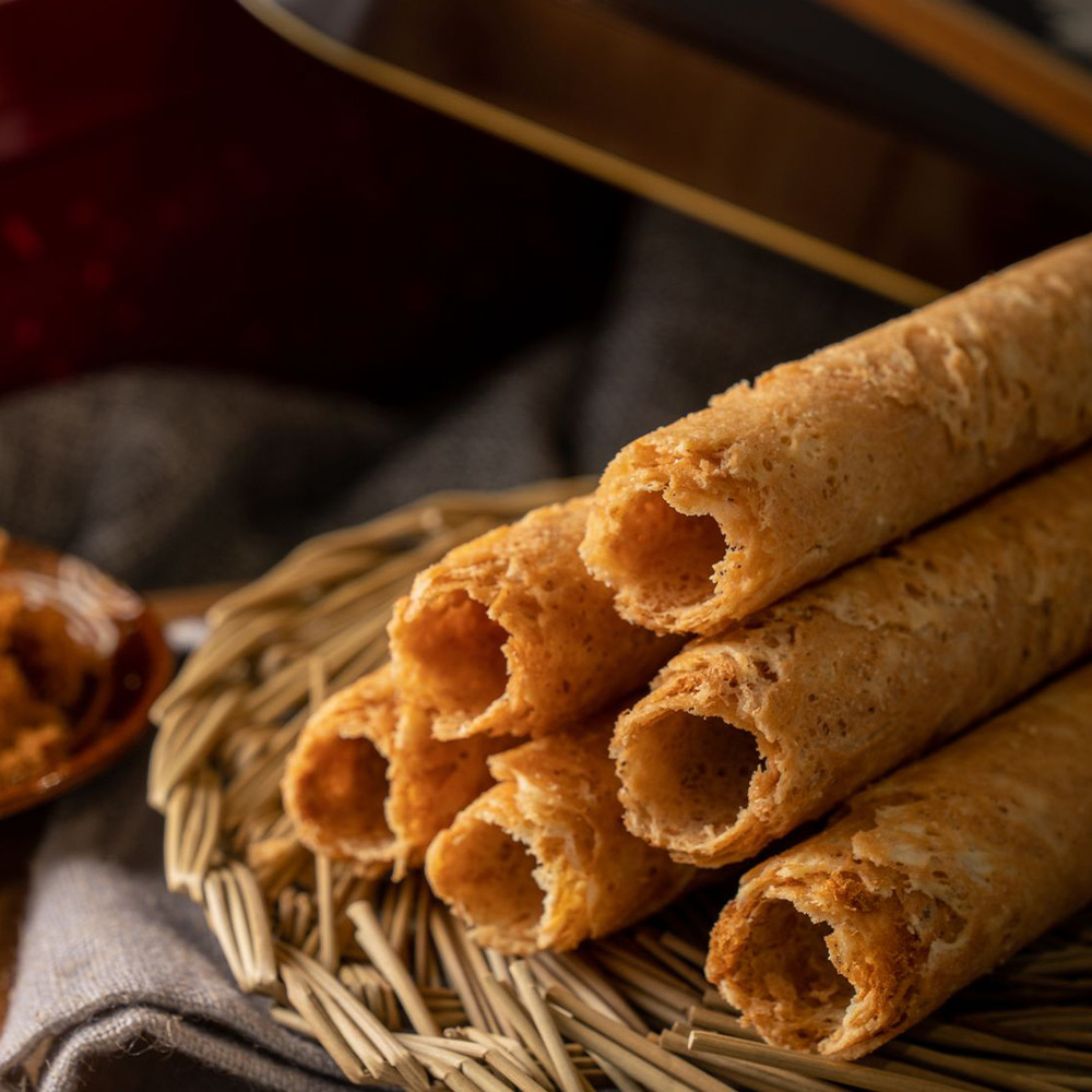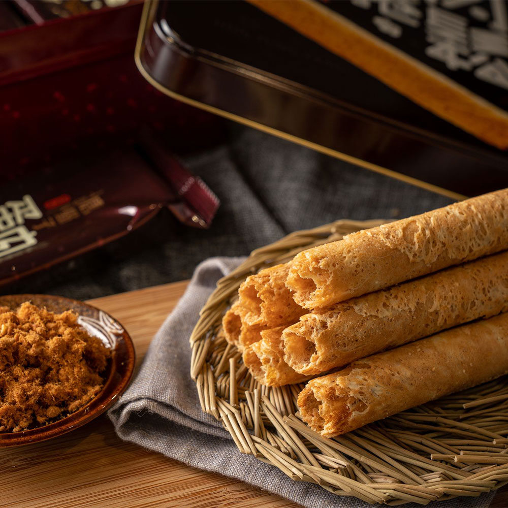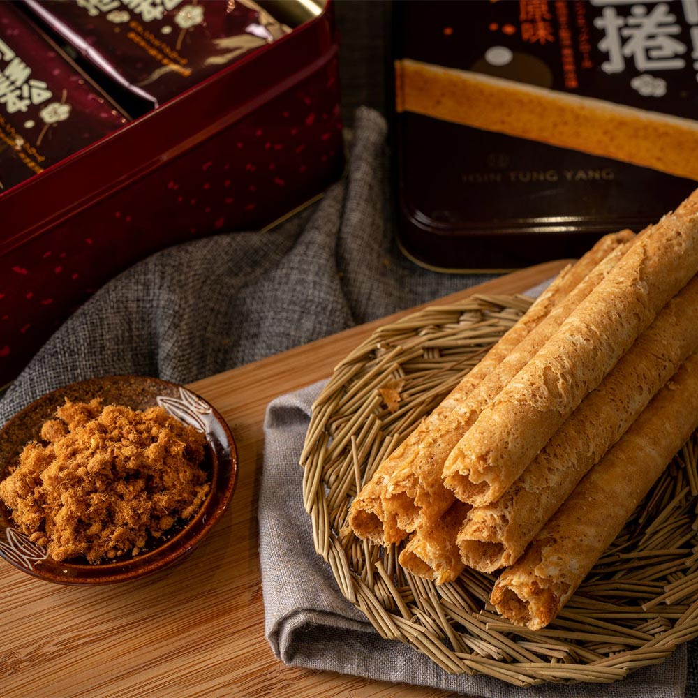 採用新東陽肉鬆與完美的蛋奶比例 ,製作過程不添加一點水,才能使蛋捲皮香味濃郁,口感酥脆。