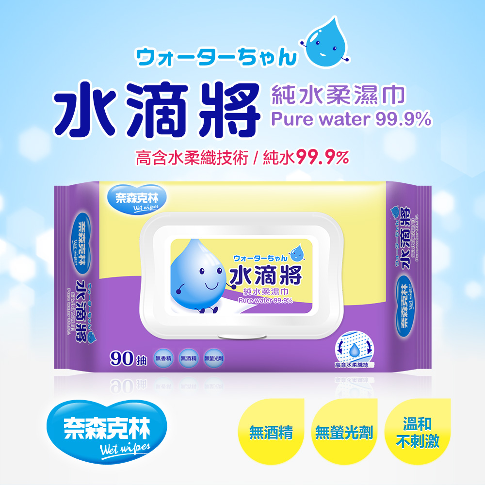 奈森克林 水滴將純水柔濕巾90抽(有蓋)X24包箱