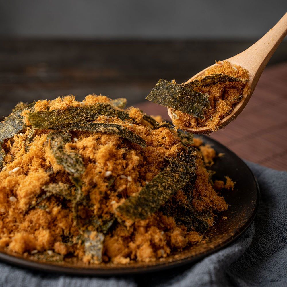 1.嚴選食材:精選CAS健康豬後腿肉為原料,肉質鮮嫩富彈性,添加海苔、芝麻,口感豐富更顯美味。