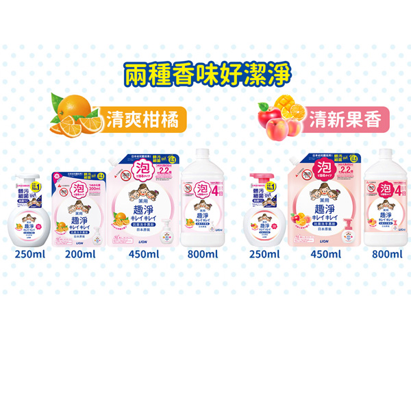 日本獅王趣淨洗手慕斯補充包450ml-清新果香*3包