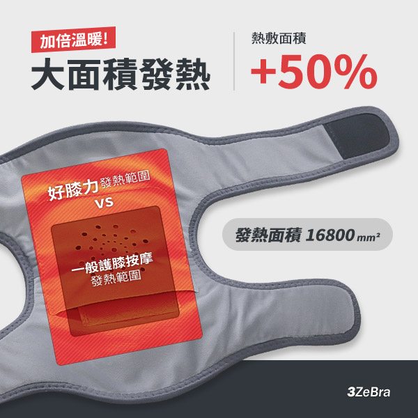 ❶ 獨創大面積發熱暖膝,熱敷面積+50%