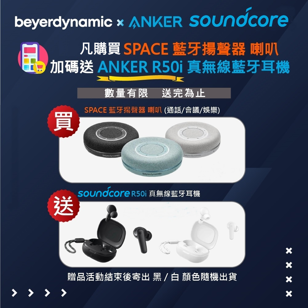 【beyerdynamic 拜雅】高品質藍牙喇叭SPACE 會議揚聲器 藍芽通話 360度收放音 (黑色)送ANKER R50i 真無線藍芽耳機