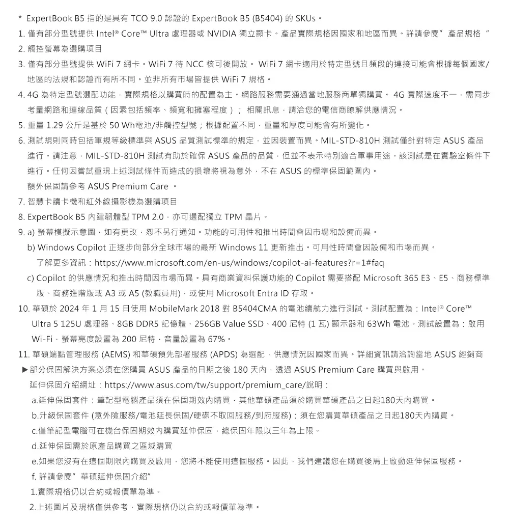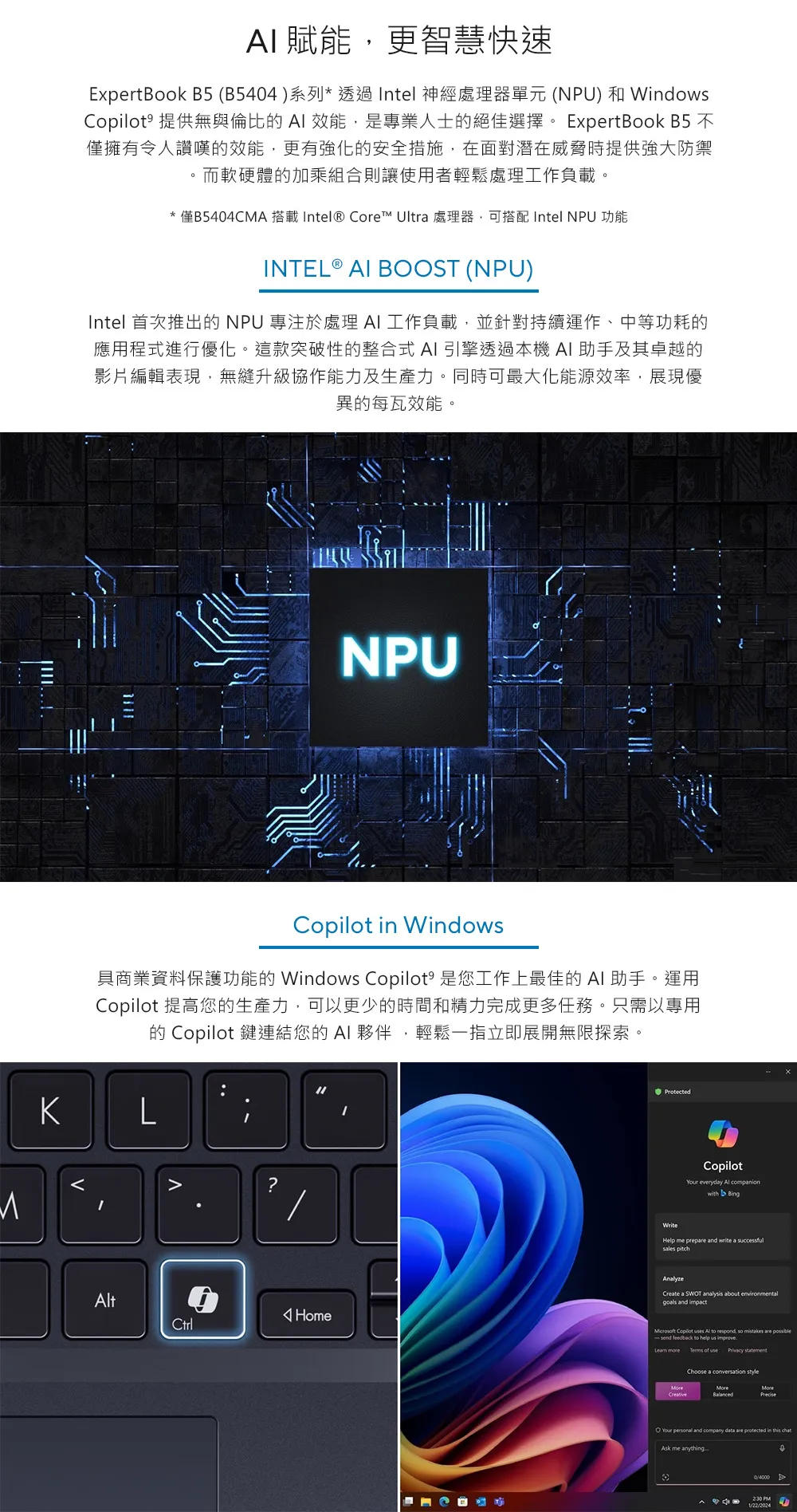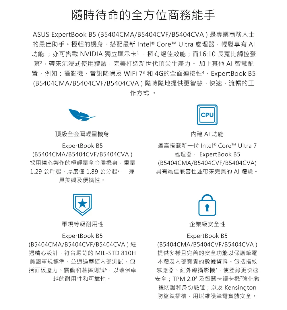 ASUS 華碩 B5404CMA-0251A155H (14" WQXGA/Ultra 7 155H/16G/512G/W11P/3Y) 商用筆電
