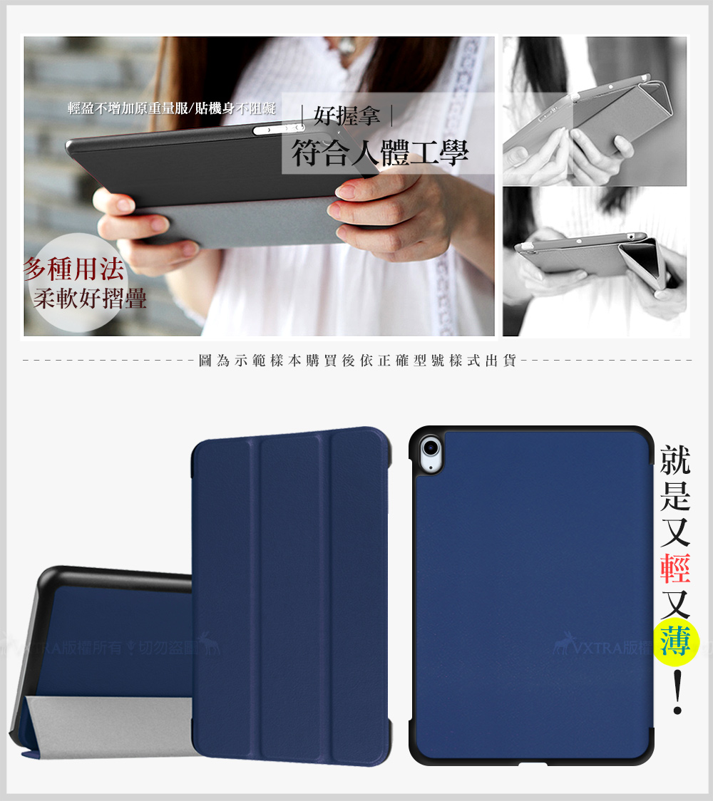 VXTRA 2025/2024 iPad Air7/Air6 11吋 共用 經典皮紋三折保護套 平板皮套(品味金)