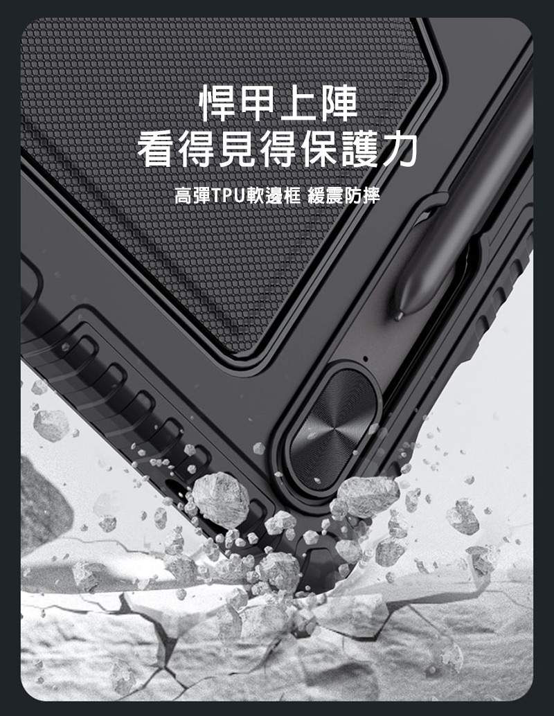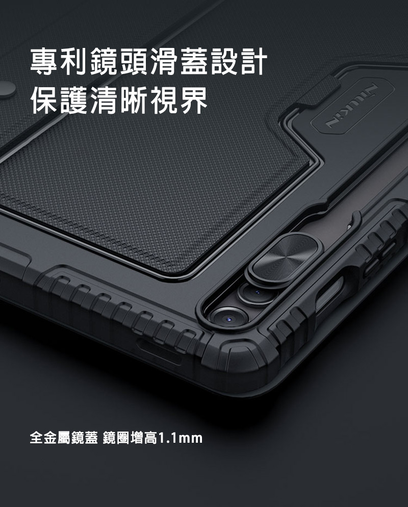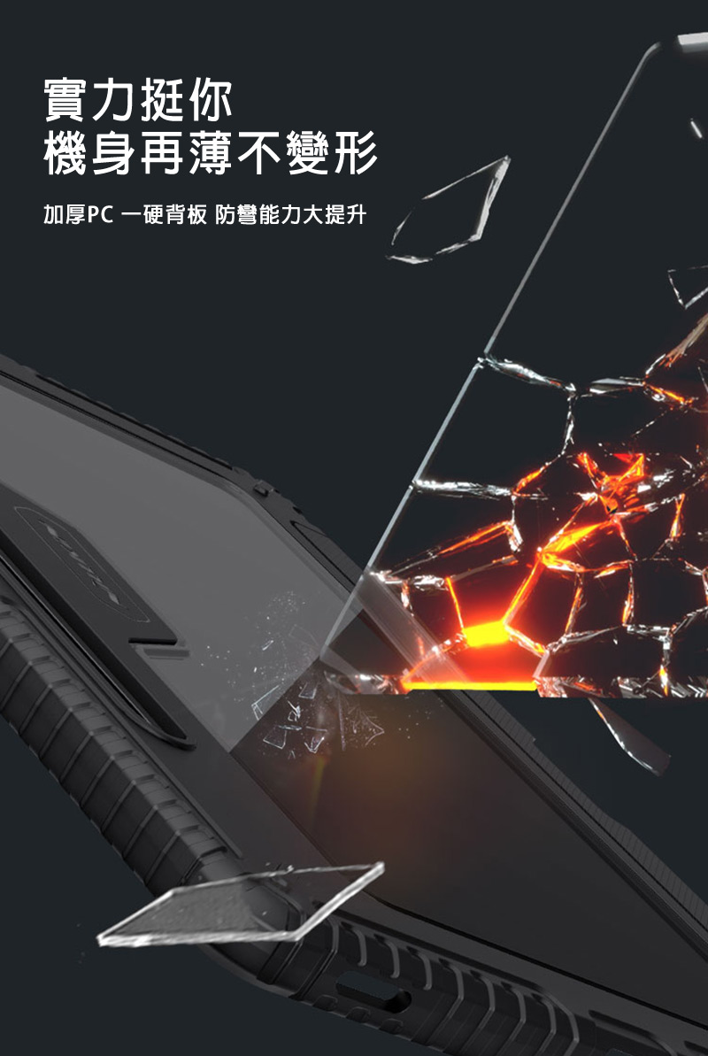 .強悍抗摔保護殼緊貼機身,搭配專利滑蓋鏡頭設計,為設備的正背面、四角和鏡頭提供可靠的保護