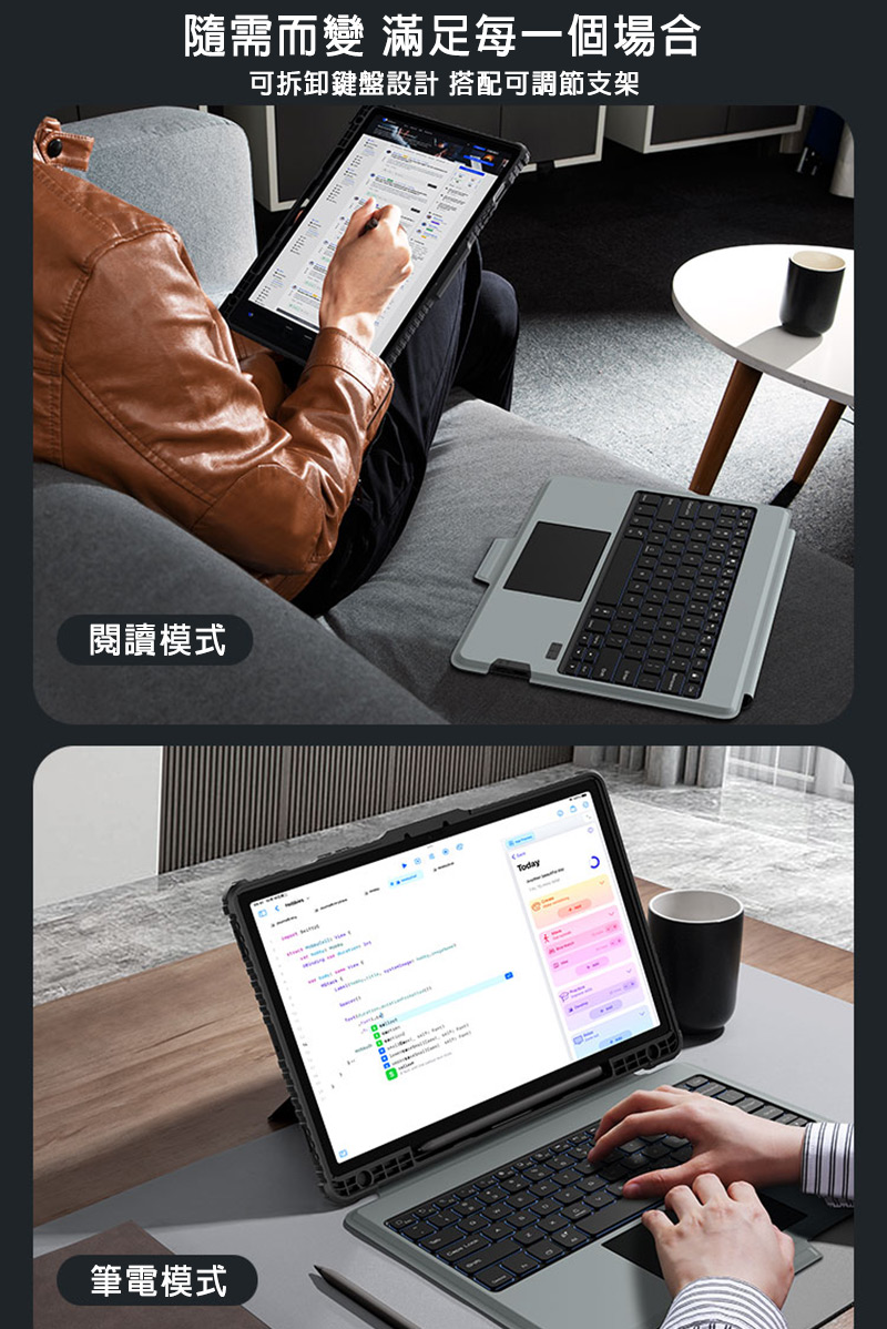.配備可調節支架、可拆卸鍵盤和智慧觸控板