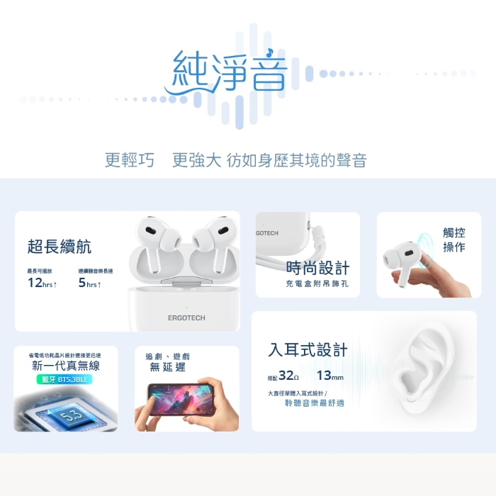 ERGOLINK 人因科技 人體工學觸控式真無線藍牙耳機 BW70