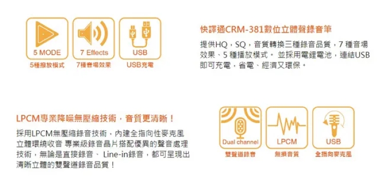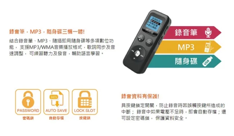 Abee 快譯通 數位立體聲錄音筆(8G) CRM-381