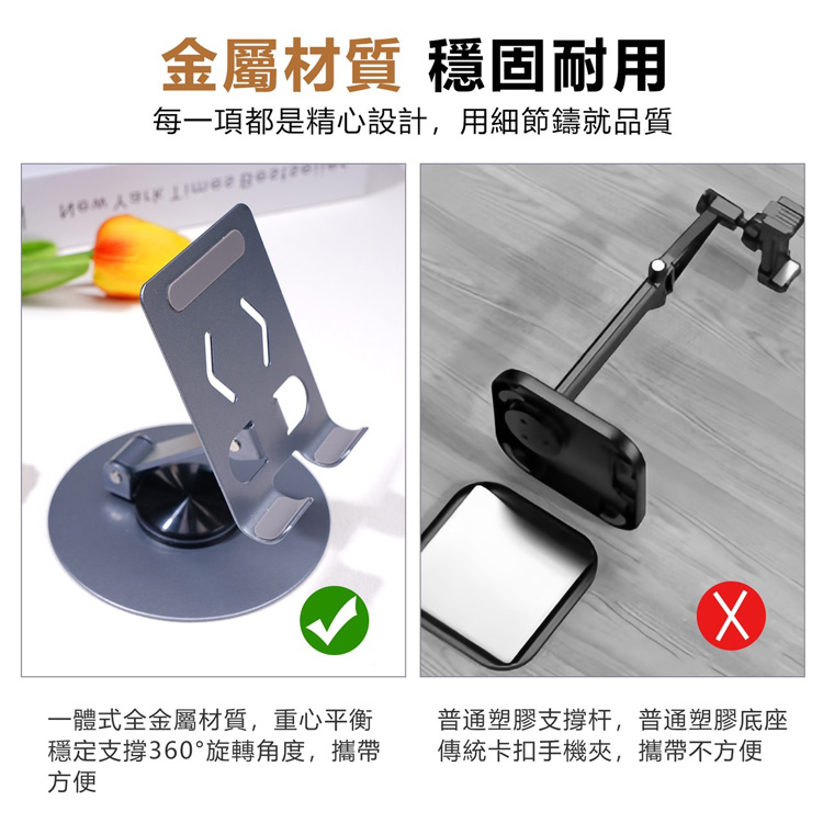 一體式全金屬材質,重心平衡穩定支撐360度旋轉角度,攜帶方便