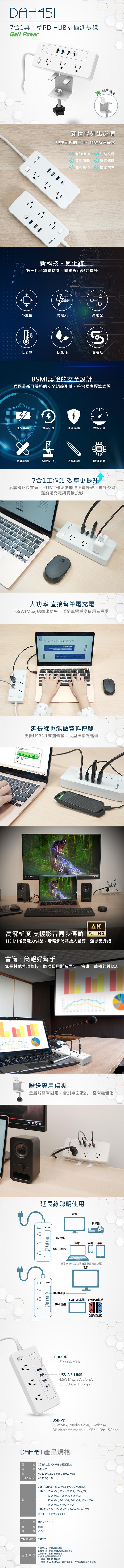 DIKE 7合1桌上型PD HUB排插延長線(贈專用桌夾) DAH451WT