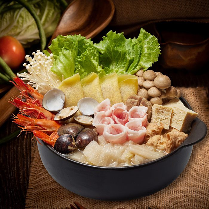 豪氣底料,包含豆皮、香菇與台灣豬五花,熬煮後尾韻帶回甘,越喝越上癮。