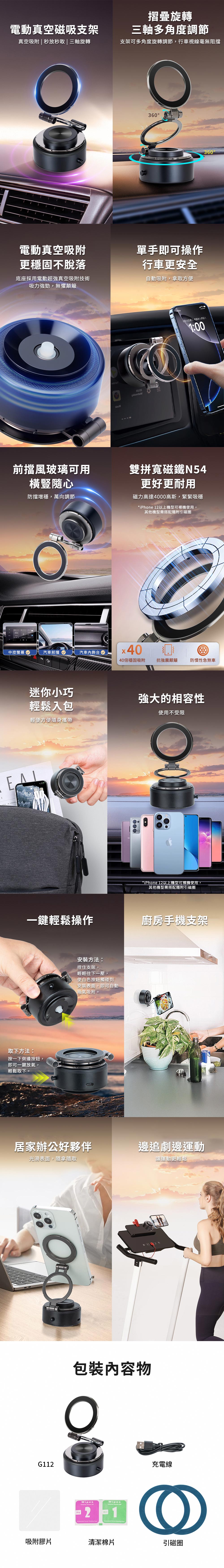 免黏貼 超穩吸力 穩固不易掉落 三軸多角度調節