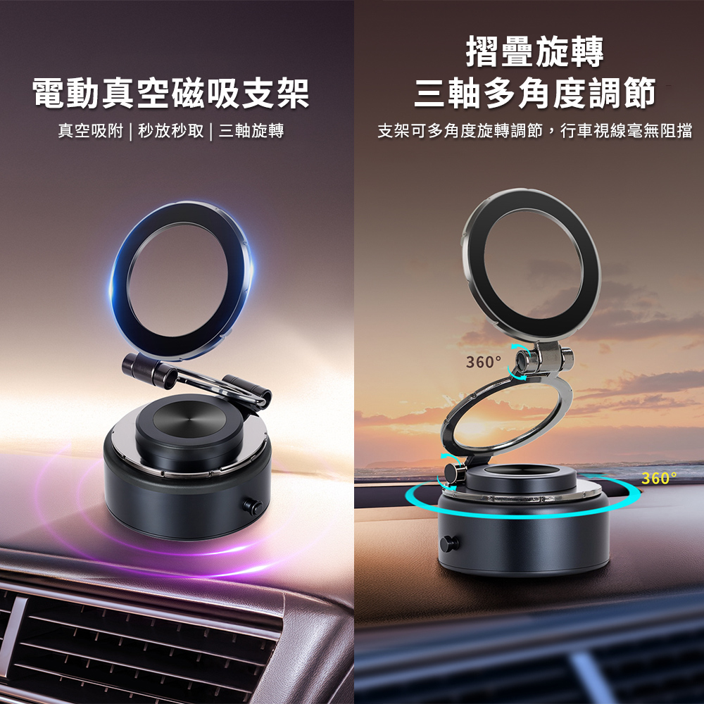 【Timo】360°旋轉真空吸附三軸摺疊磁吸手機支架(充電款)-銀色