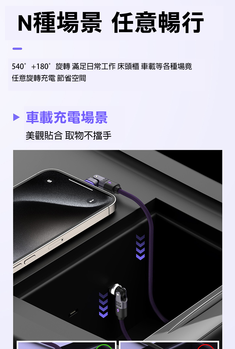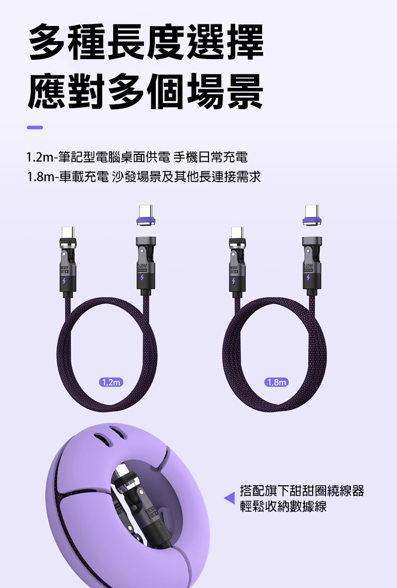 .非磁吸端可 360 度 + 180度旋轉;磁吸端可180度旋轉,線身不凹折,好整理