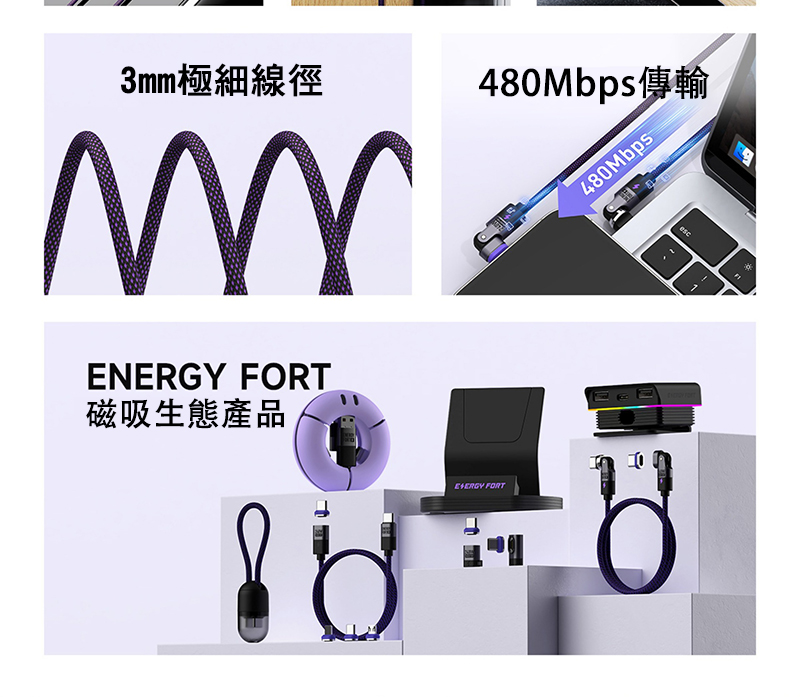 ENERGY FORT Type-C FORT 540° 磁吸旋轉數據線(240W)(1.8M)