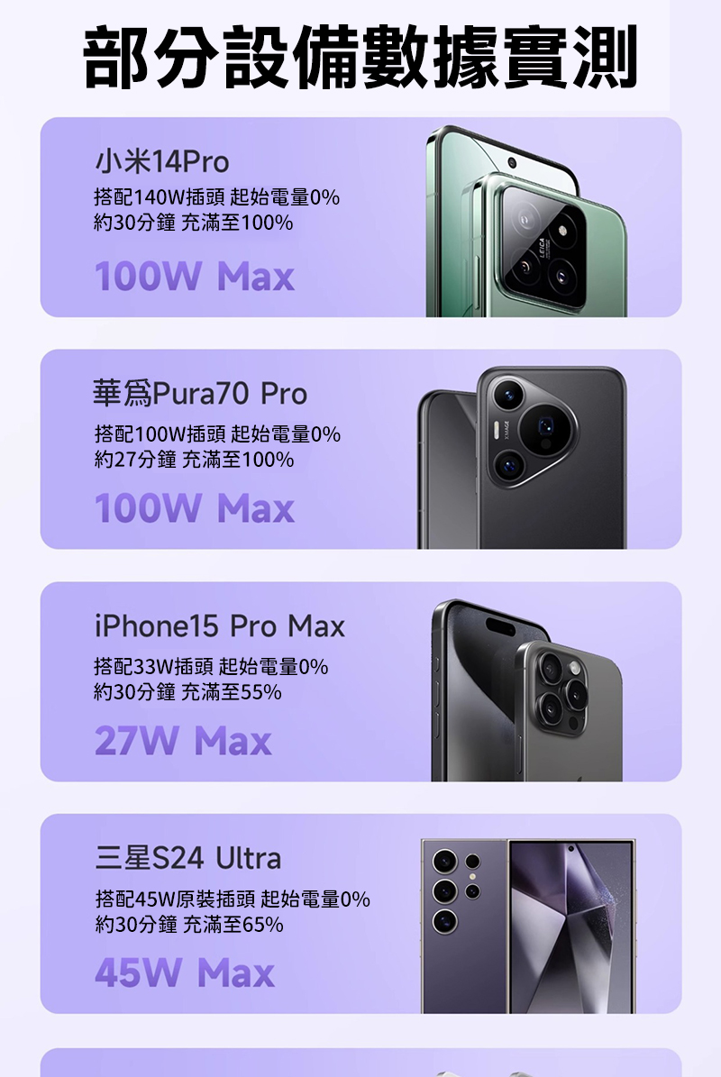 .真 PD3.1 240W 快充,電量高速充滿(僅限支援PD 3.1 協議機型)