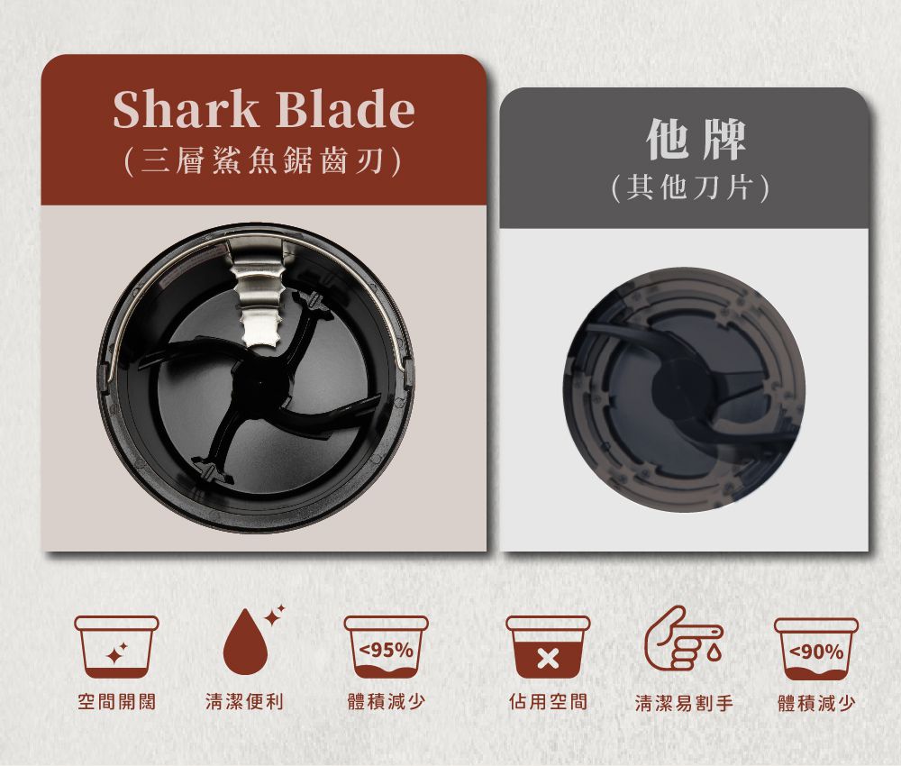緊湊的設計讓桶內空間更大,不會因為過多的刀片佔用空間導致容量變小,