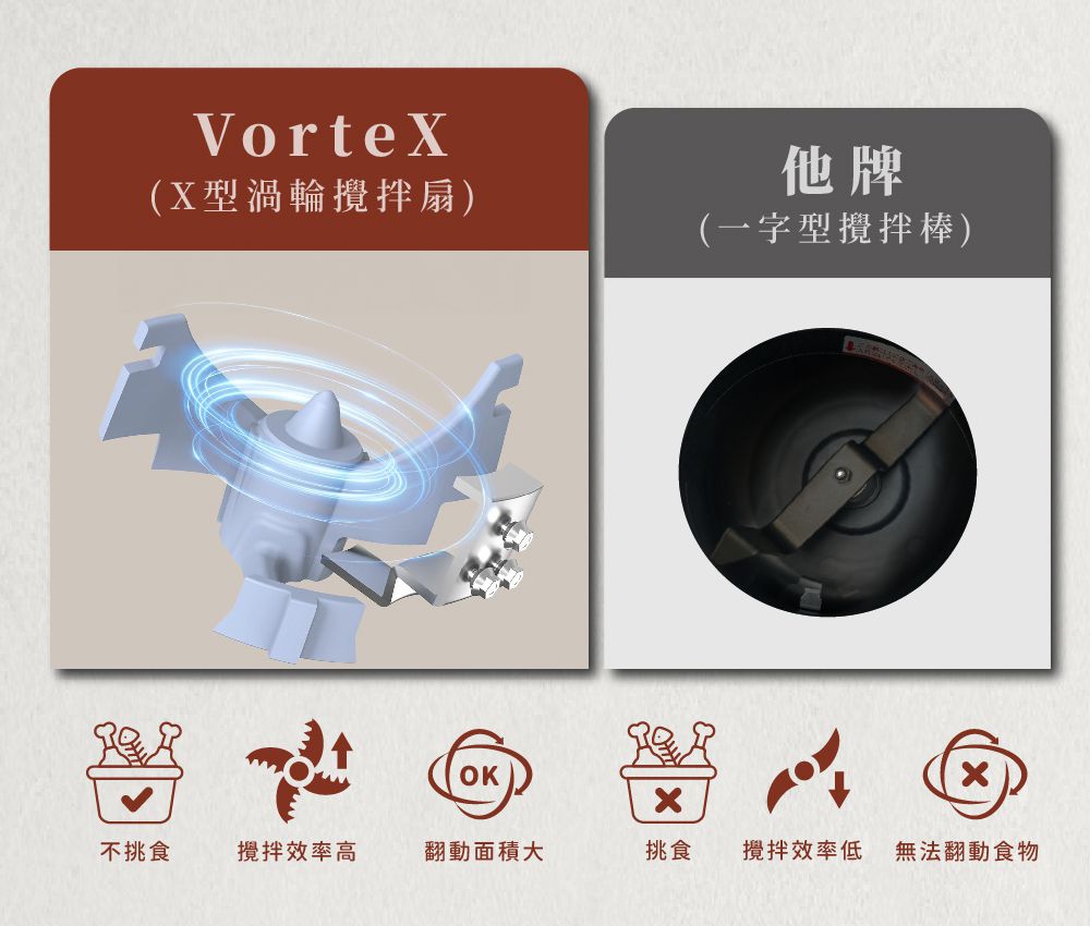 ✔️ X型渦流攪拌扇 翻動效率高 處理細緻