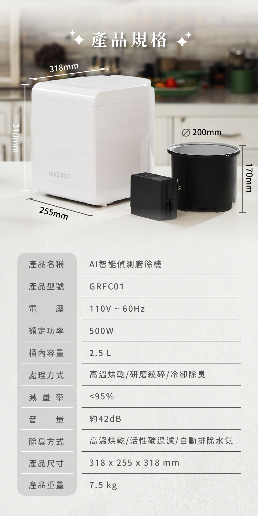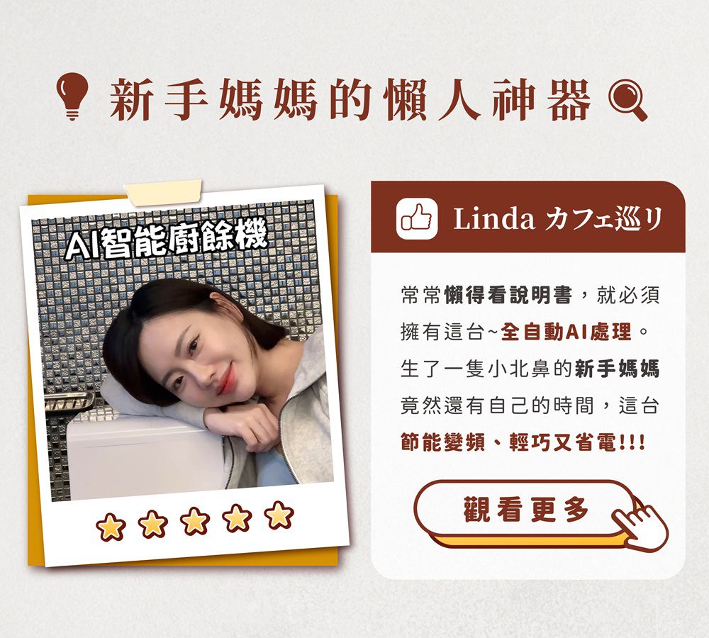 輕巧美型珍珠白,盡顯居家品味。讓困難的廚餘清理通通給AI智能廚餘機