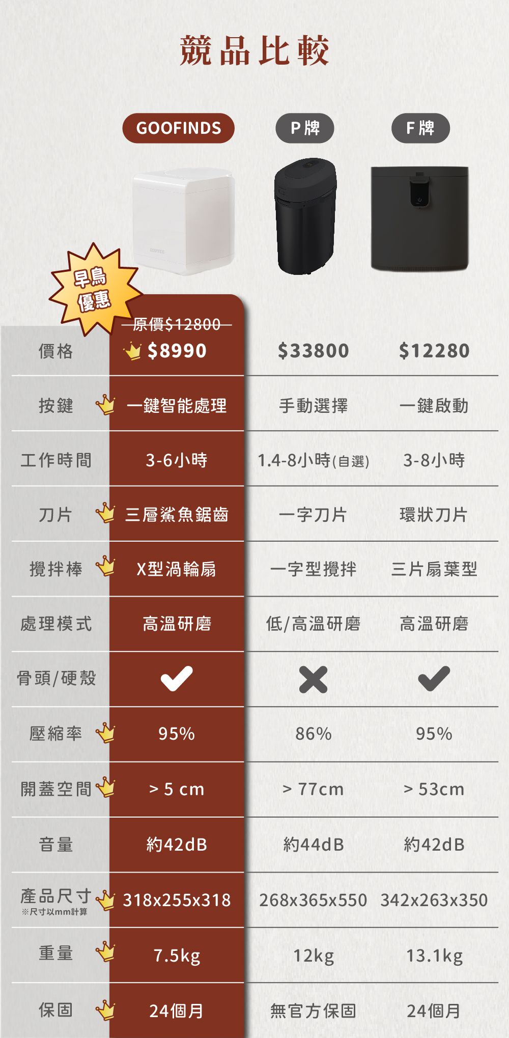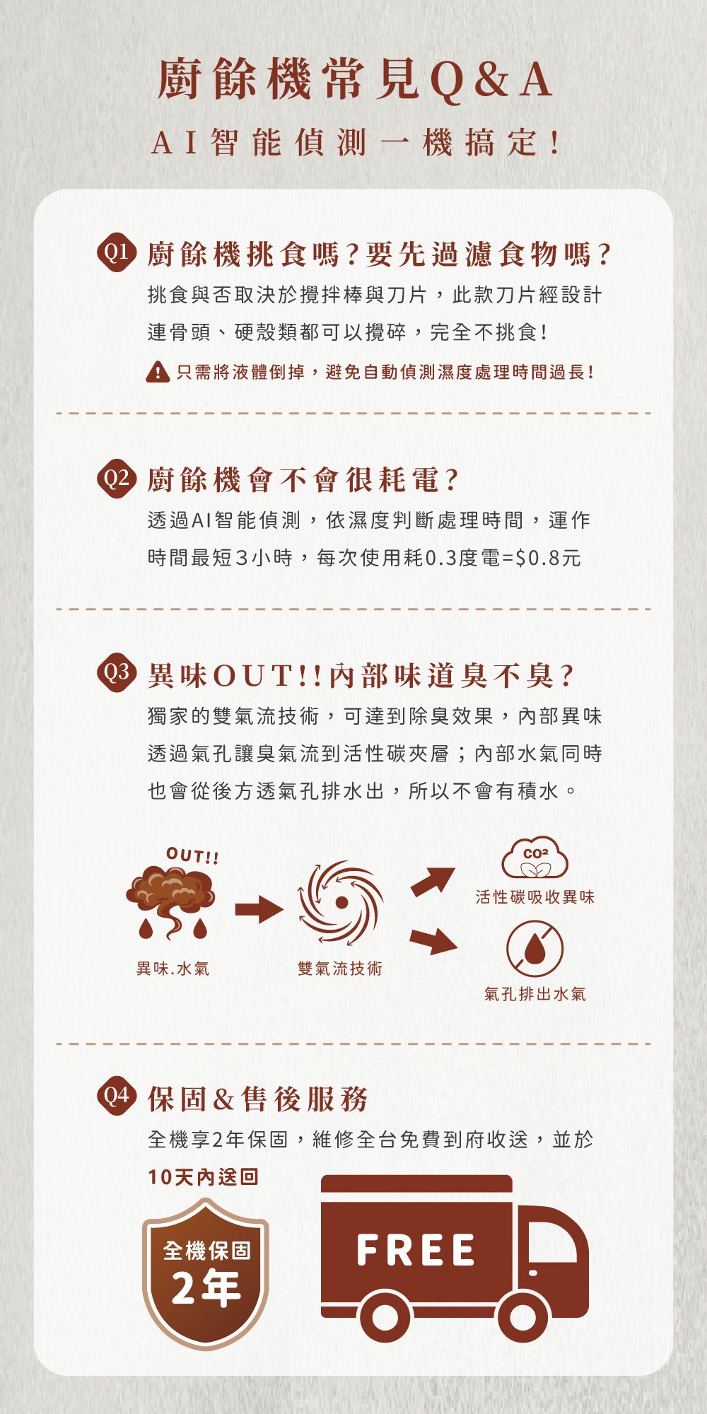 其他廠商沒告訴你的事:廚餘機在運轉時常常產生異味,運轉結束後也需要將下方積水倒掉,在使用上非常不便與惱人。