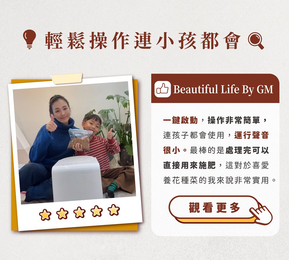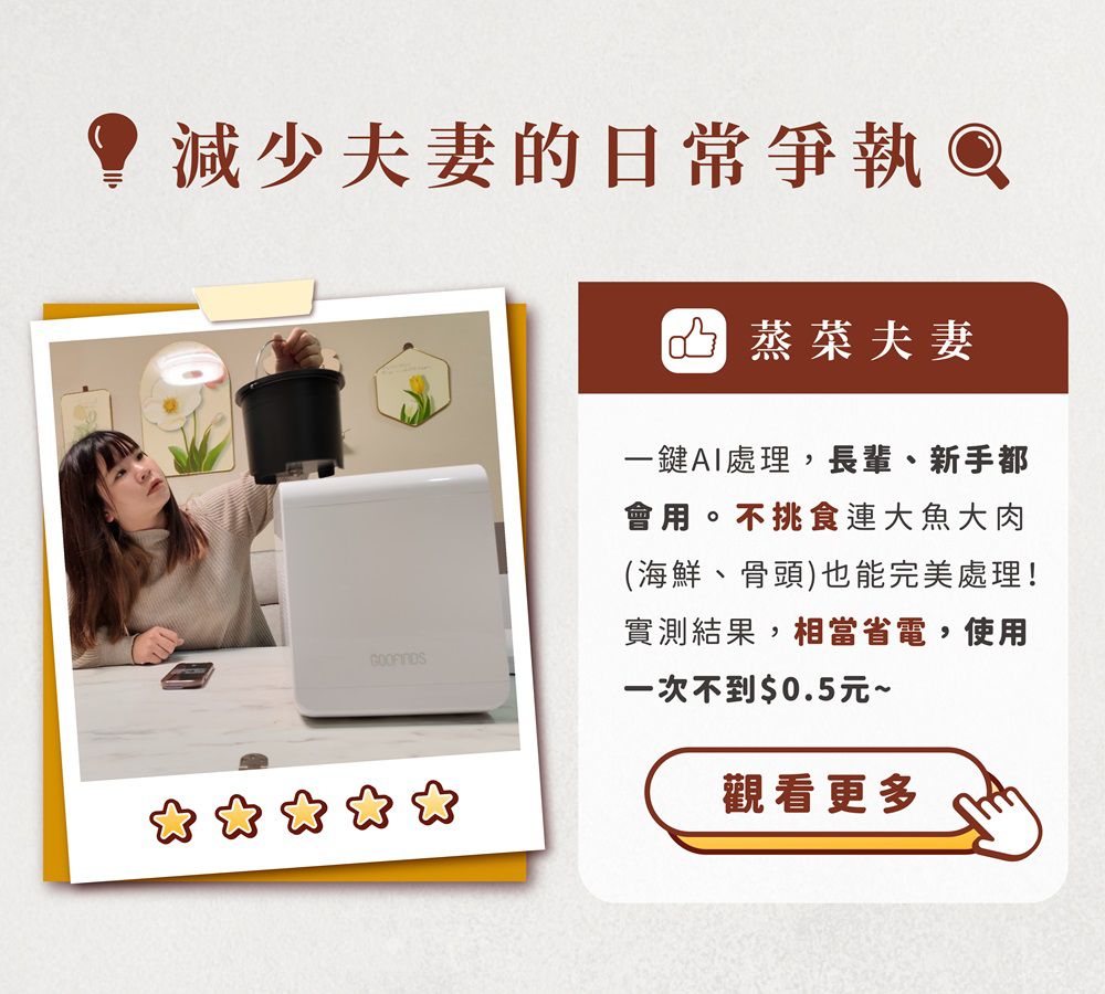 依據目前電費費率計算,每次使用僅需消耗0.3度電,約$0.8元。減少使用上的負擔,也消除了對廚餘機耗電的印象。