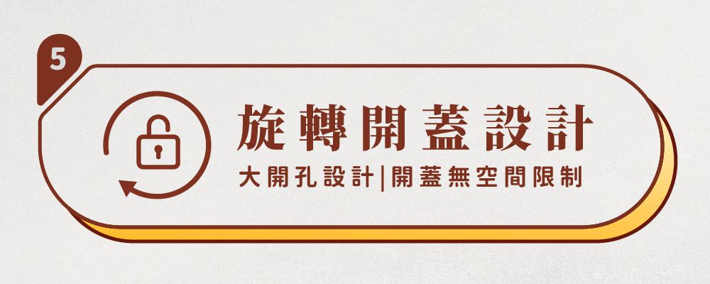 |旋轉分離式上蓋 提供更大的開孔,更少的高度限制