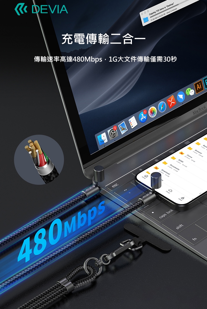 .既是掛繩,也是傳輸線,可少帶一條線出門