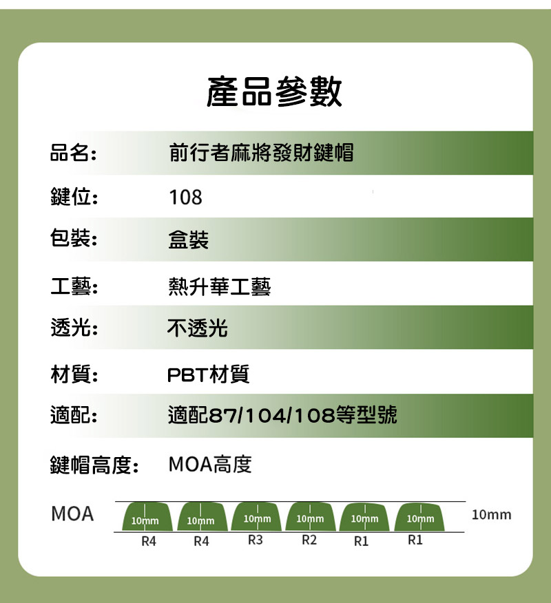 EWEADN 前行者 MX 十字軸 PBT 鍵帽 - 發財麻將