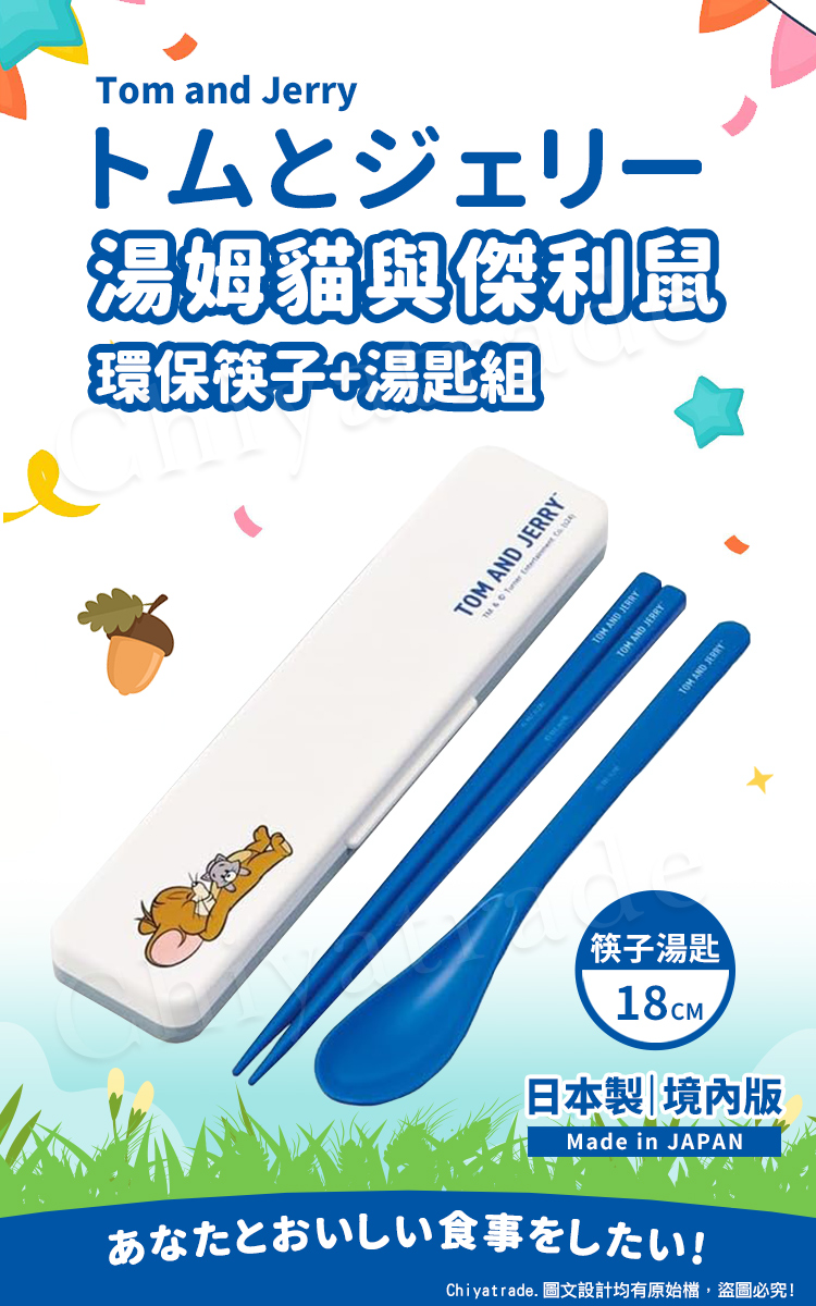 【百科良品】日本製 湯姆貓與傑利鼠 睡午覺款 環保筷子+湯匙組 抗菌加工Ag+ 18CM(日本境內版)